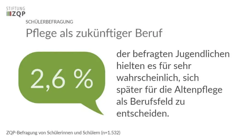 Nur 2,6 Prozent der Jugendlichen hielten es für sehr wahrscheinlich, sich später für die Altenpflege als Berufsfeld zu entscheiden. Bei den Berufseigenschaften, die den Schülern besonders wichtig waren, punktete die Altenpflege kaum.