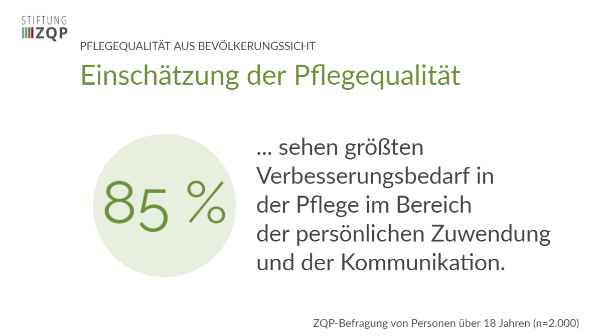 Die ZQP-Analyse PFLEGEQUALITÄT AUS BEVÖLKERUNGSSICHT aus dem Jahr 2016 basiert auf einer repräsentativen Befragung von ab 18-Jährigen in Deutschland. Die Befragung zeigt Meinungen und Einschätzungen sowie den Informationsbedarf der Bevölkerung zur Pflegequalität in Deutschland auf.