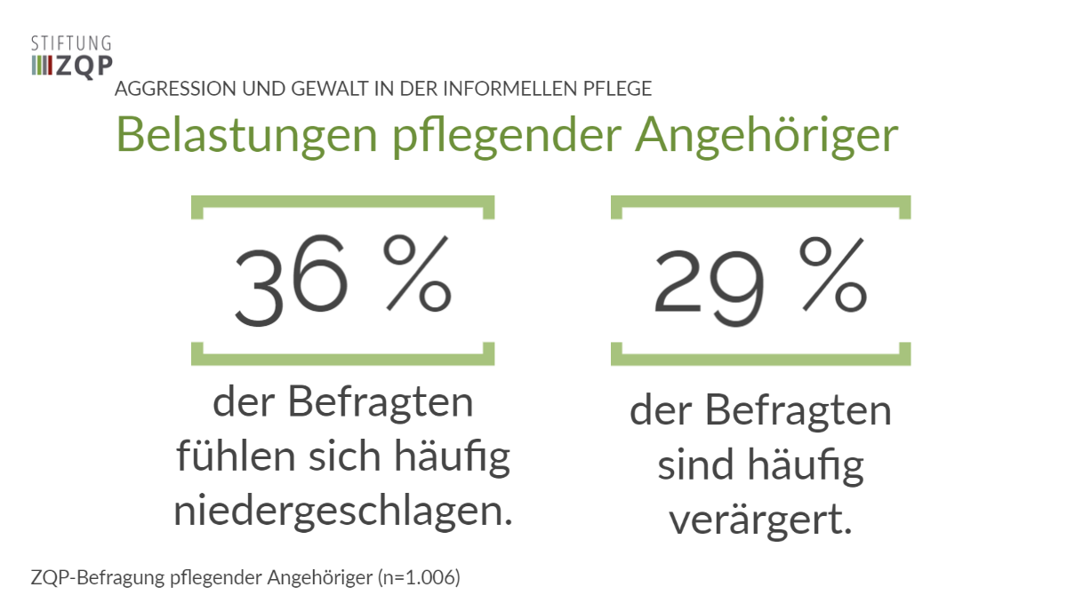Pflegende Angehörige sind durch die Pflege teilweise erheblich belastet. Dies kann zum Beispiel zu Frustration, Aggression bis hin zu Gewalt gegen pflegebedürftige Menschen führen. Auch Konflikte können entstehen.
