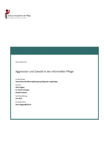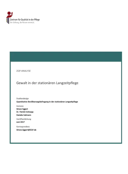 Der ZQP-Report GEWALTPRÄVENTION IN DER PFLEGE mit Stand 2017 enthält Interviews und Analysen von Experten aus Wissenschaft und Praxis sowie Studienergebnisse dazu was Gewalt in der Pflege ist, wie häufig Gewalt vorkommt und wie man Gewalt vorbeugen kann.